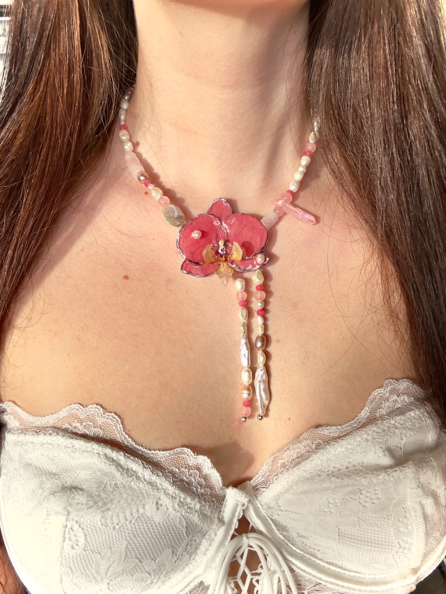 Blush crystal orchid necklace