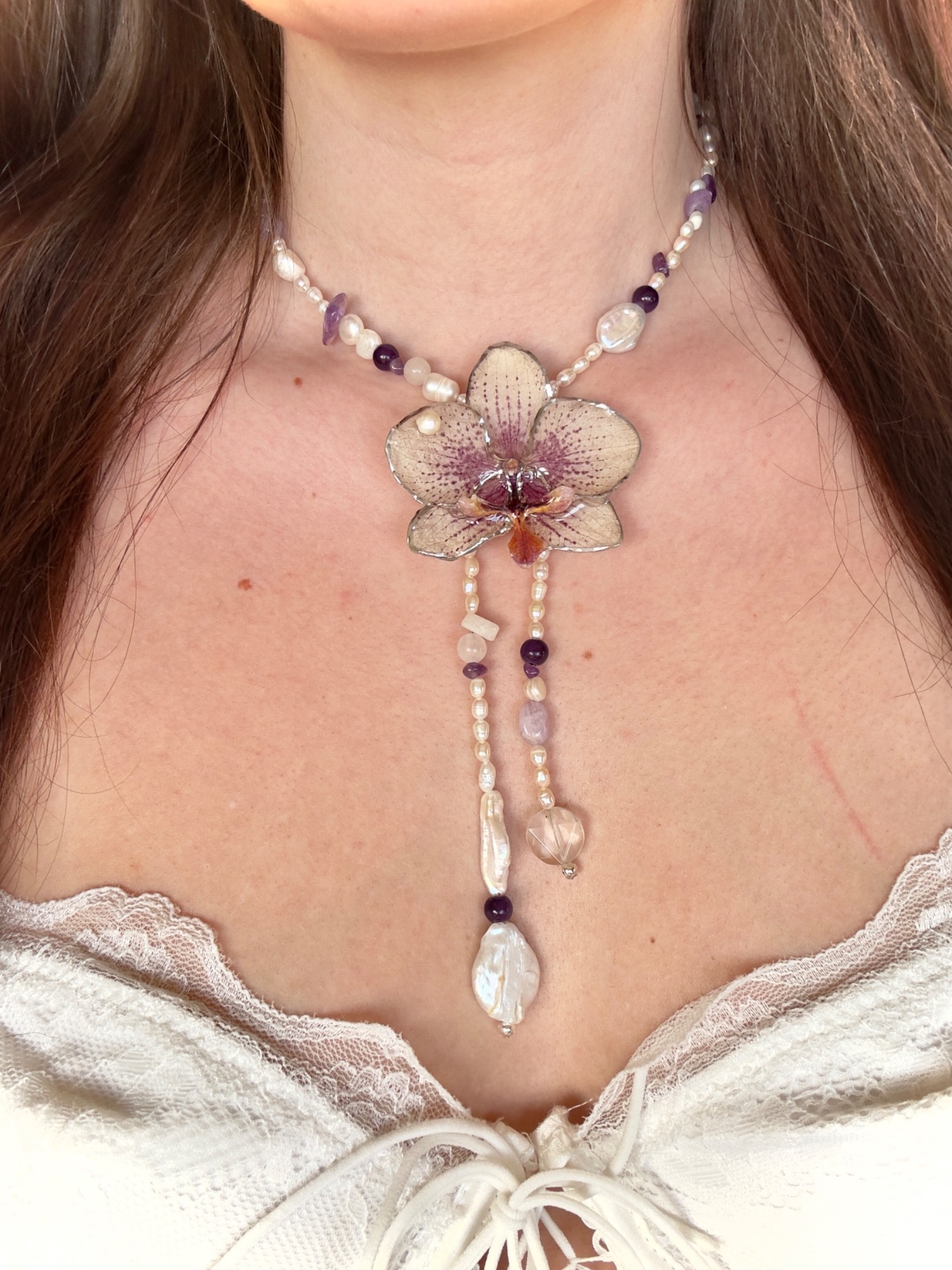 náhrdelník s pravou orchidejí