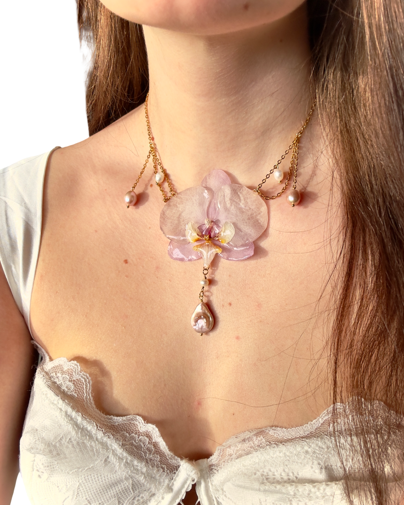 Mystic pearls orchid necklace