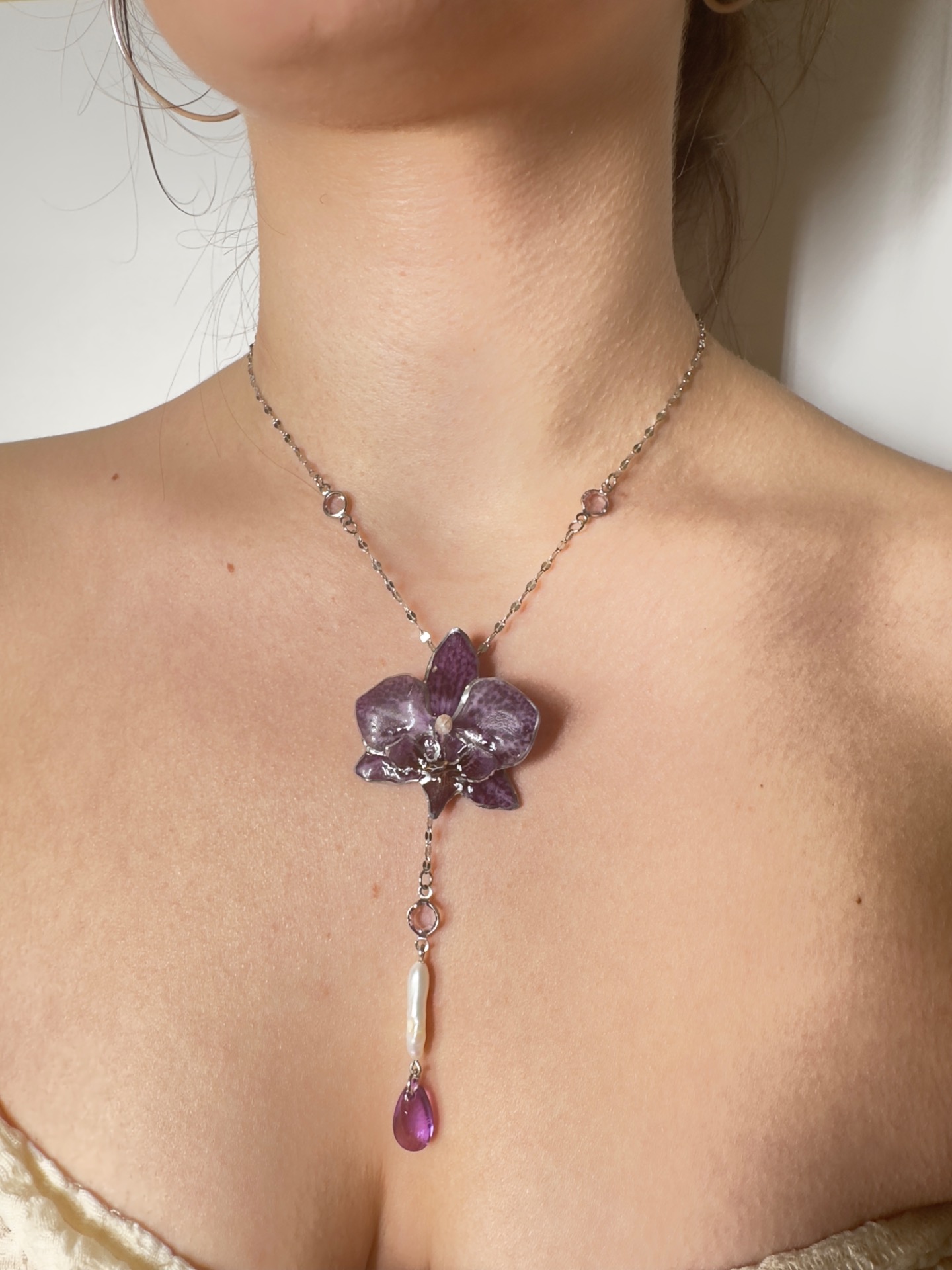 Purple dainty magic orchid necklace