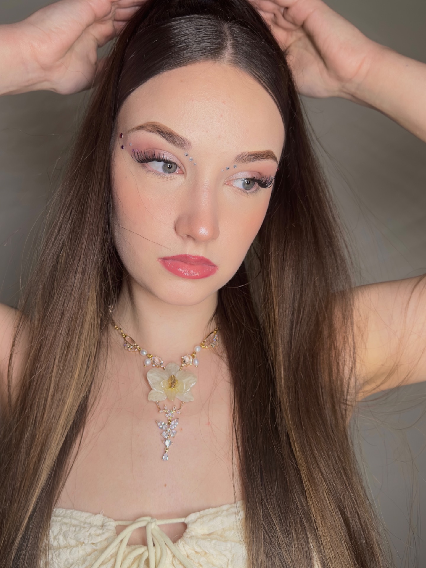 (Orchidej je vysušena a následně zalita do pryskyřice)